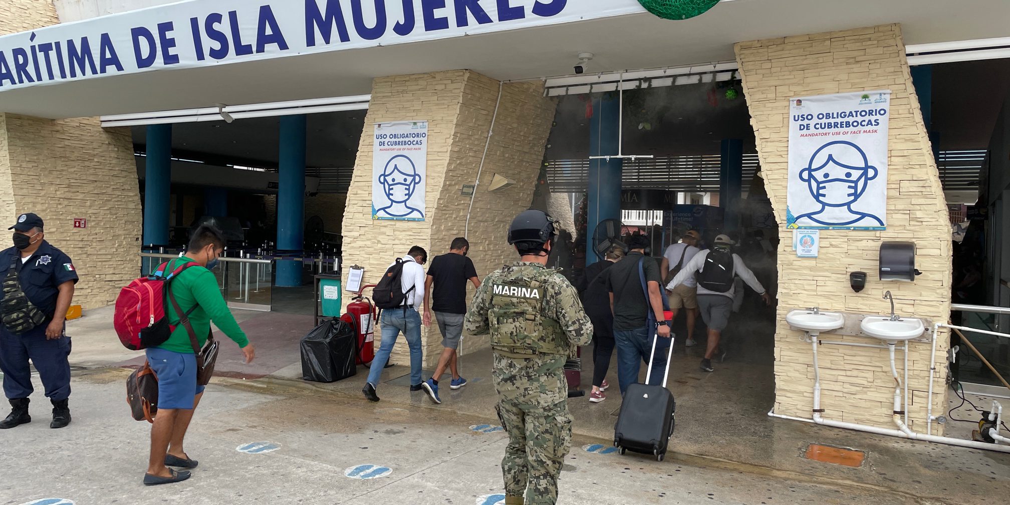 Isla Mujeres, 19 de enero. – Con la ampliación del túnel sanitizante, la Administración Portuaria Integral de Quintana Roo (Apiqroo) agiliza el movimiento de pasajeros en el muelle de Isla Mujeres, permitiendo su paso continuo dentro de la terminal marítima.